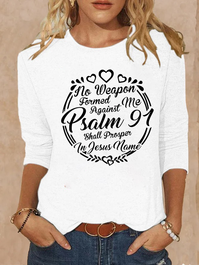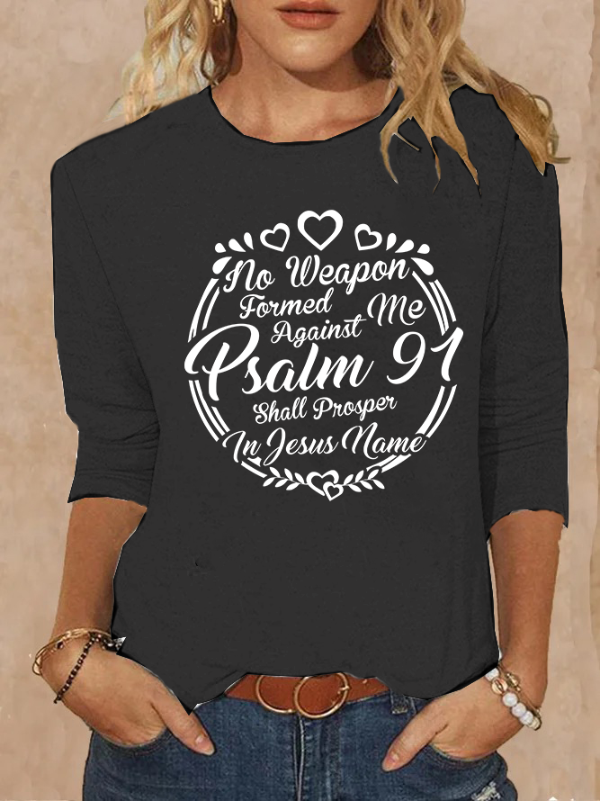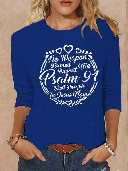 Psalm 91 No Weapon Formed Against Me Shall Prosper Christian Cotton Women's Long Sleeve T-Shirt