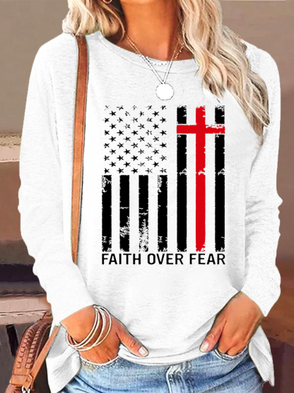 Faith Over Fear Cotton Women's Long Sleeve T-Shirt