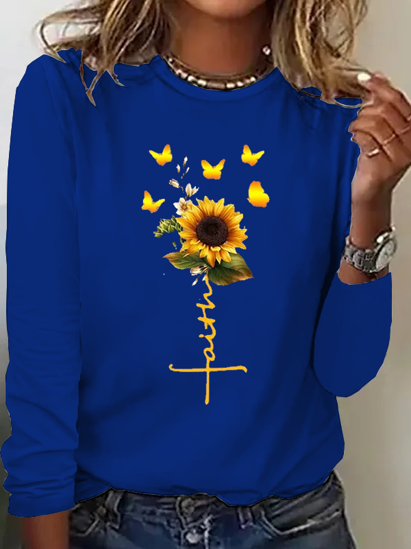 Sunflower Faith Religious Women's Long Sleeve T-Shirt