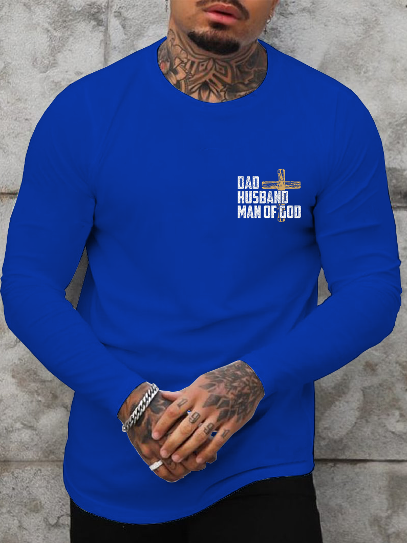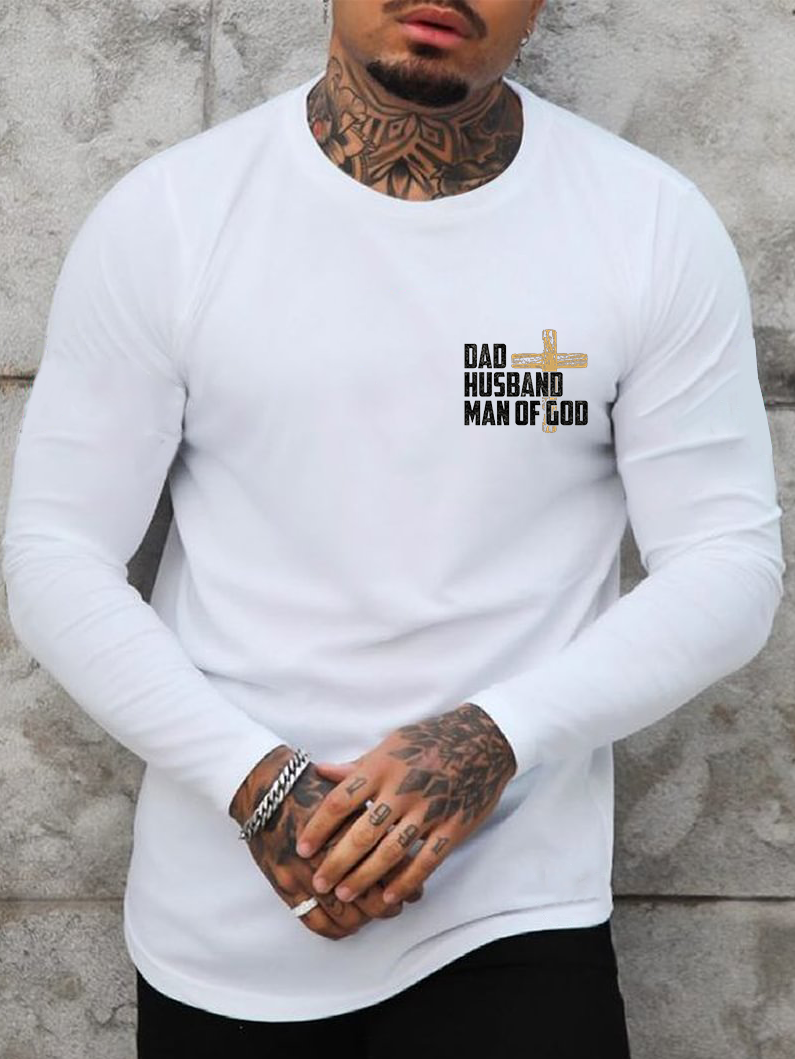 Dad, Husband, Man Of God Cotton Long Sleeve T-Shirt