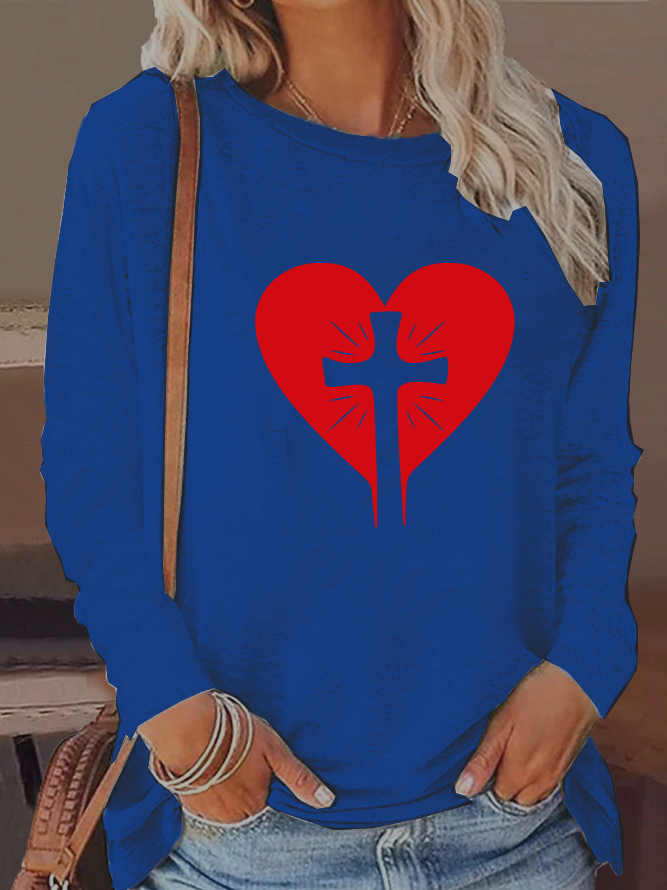 Cross Heart Christian Cotton Women's Long Sleeve T-Shirt