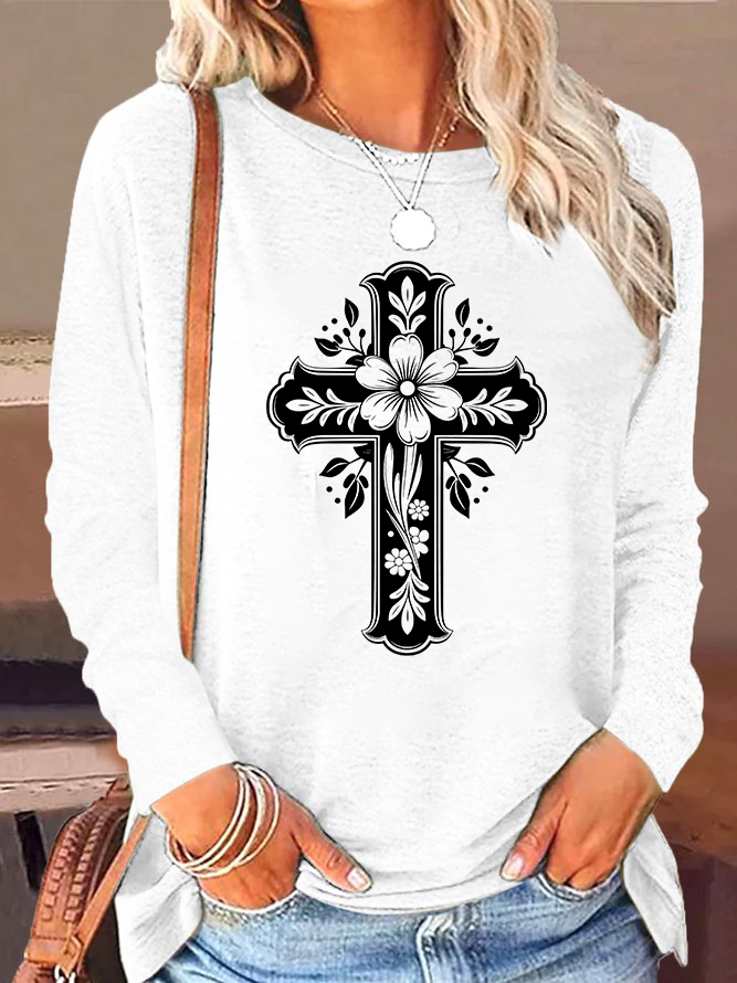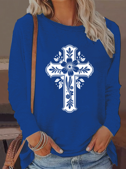 Cross Flower Cotton Women's Long Sleeve T-Shirt