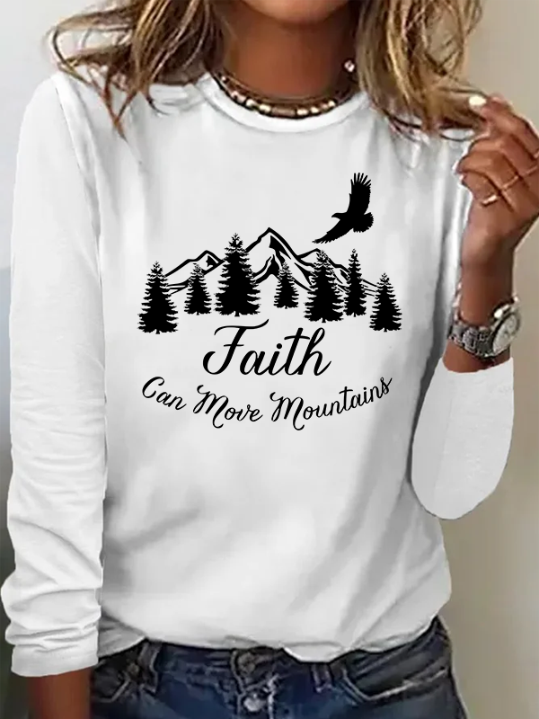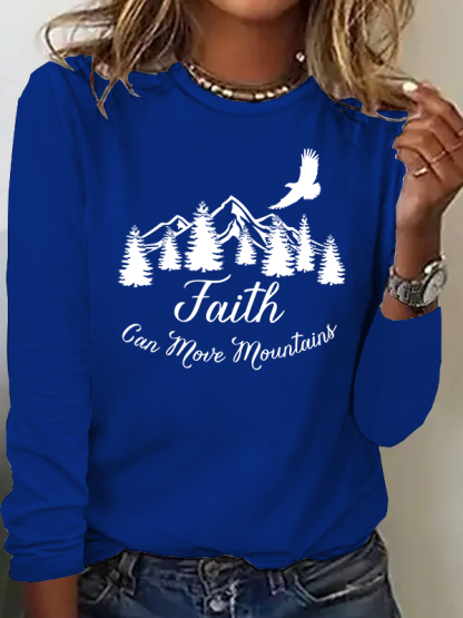 Faith Can Move Mountains Christian Cotton Women's Long Sleeve T-Shirt