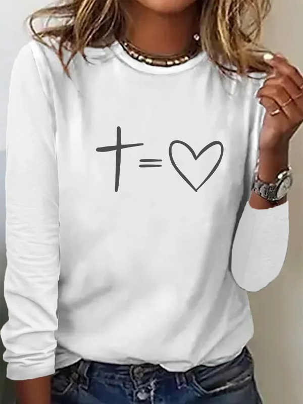 Cross Heart Christian Cotton Women's Long Sleeve T-Shirt