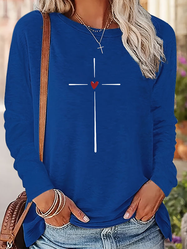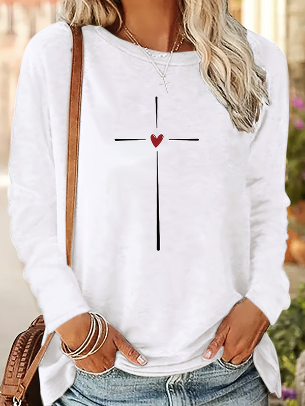 Heart Cross Christian Cotton Women's Long Sleeve T-Shirt