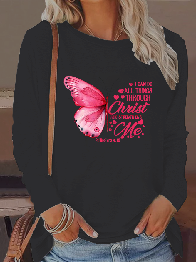 I Can Do All Things Through Christ Print Women's Long Sleeve T-Shirt