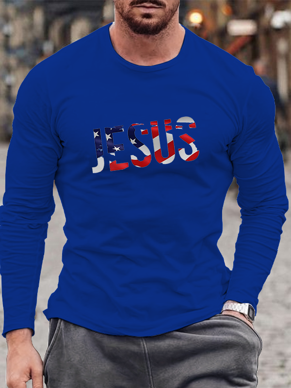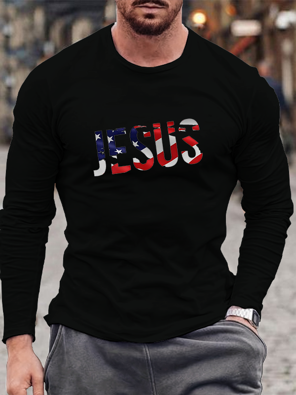 Jesus American Flag Long Sleeve T-Shirt