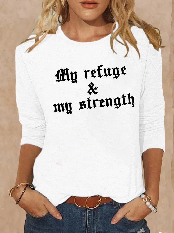 My Refuge,My Strehgth Christian Cotton Women's Long Sleeve T-Shirt