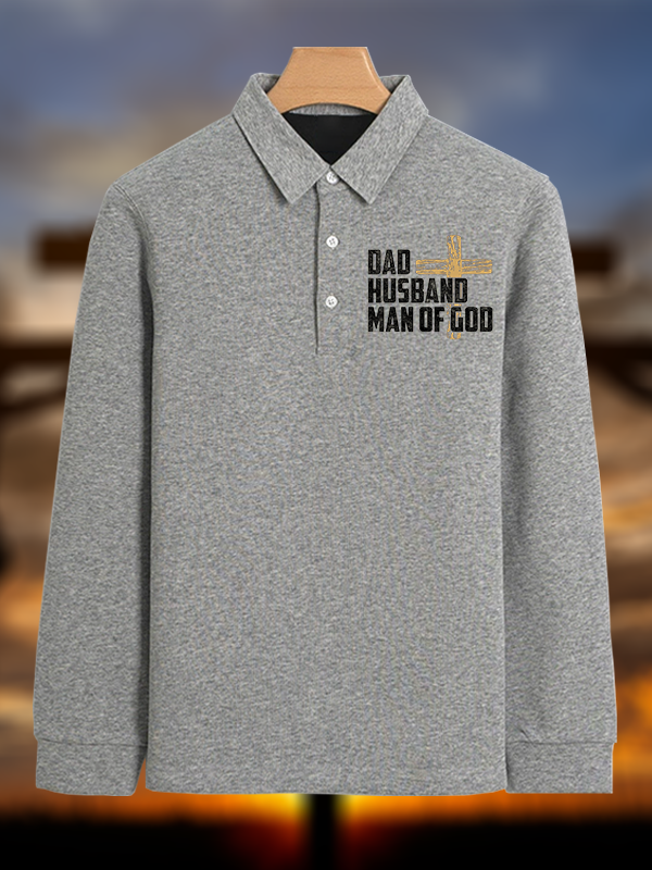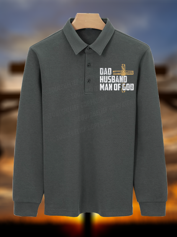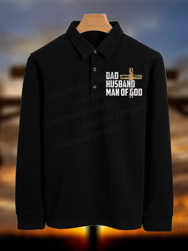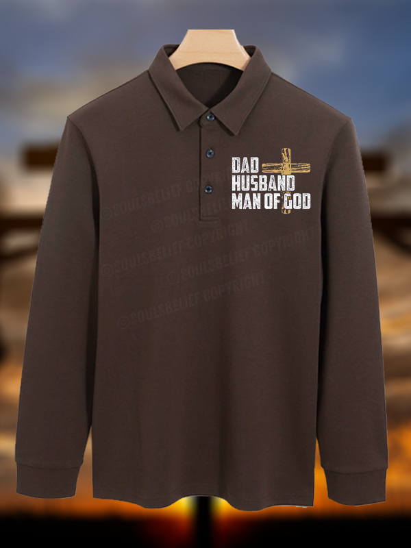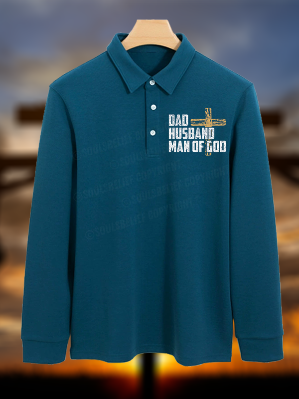 Dad, Husband, Man Of God Christian Cotton Long-sleeve Polo Shirt