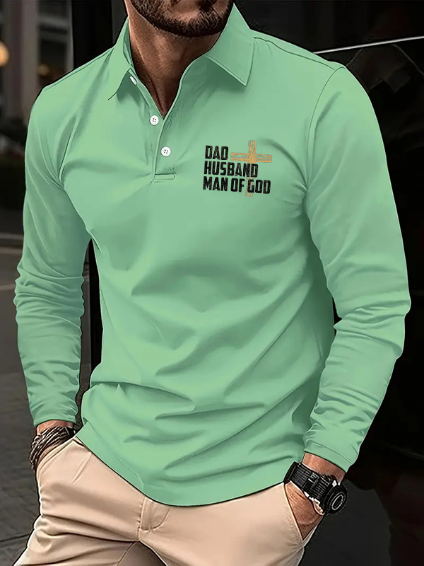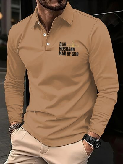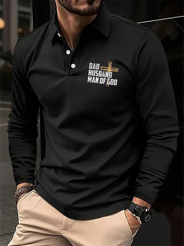 Dad, Husband, Man Of God Christian Cross Jesus Long Sleeve Polo Shirt