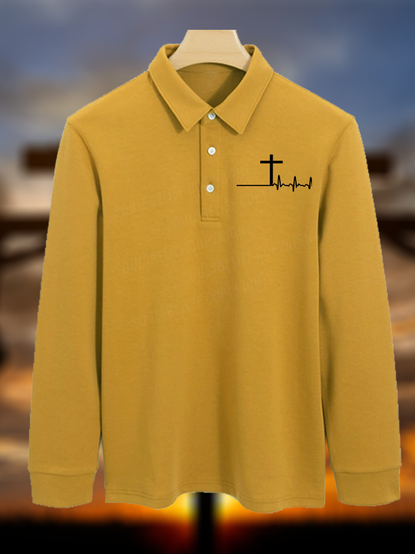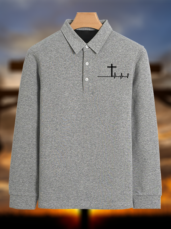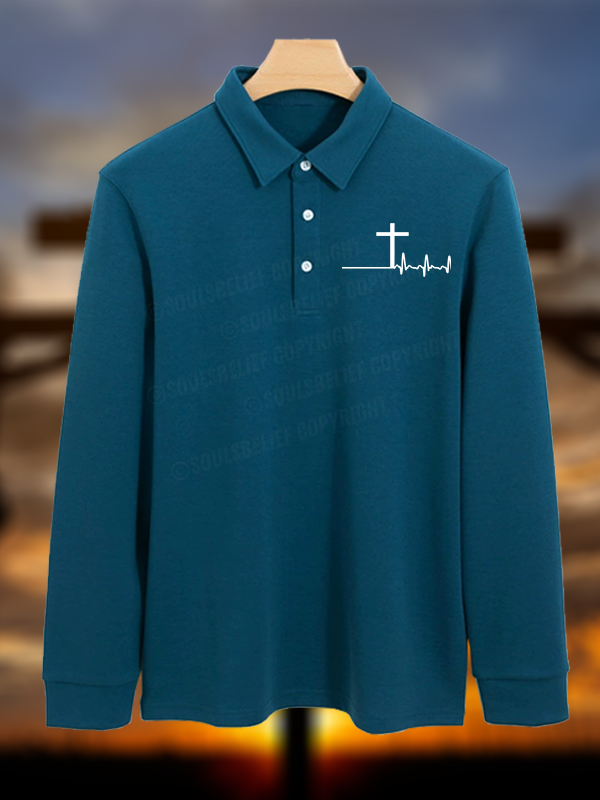 ECG Cross Christian Cotton Long-sleeve Polo Shirt