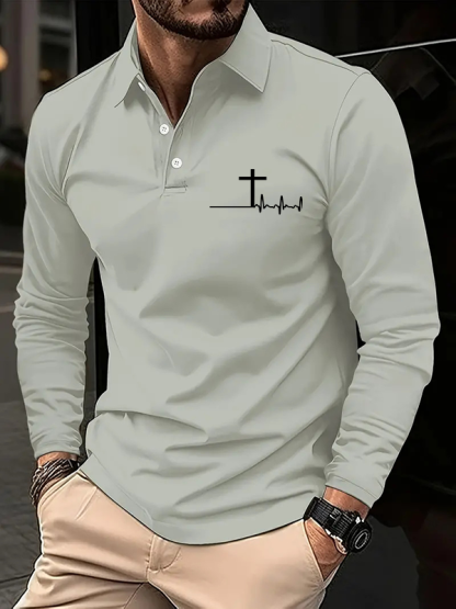 ECG Cross Long Sleeve Polo Shirt