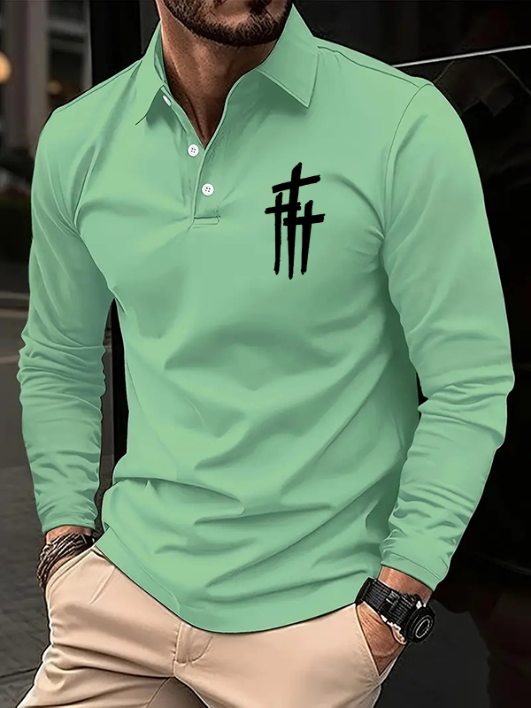 Faith Christian Cross Jesus Long Sleeve Polo Shirt