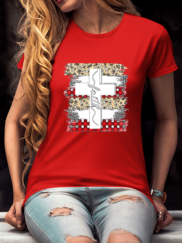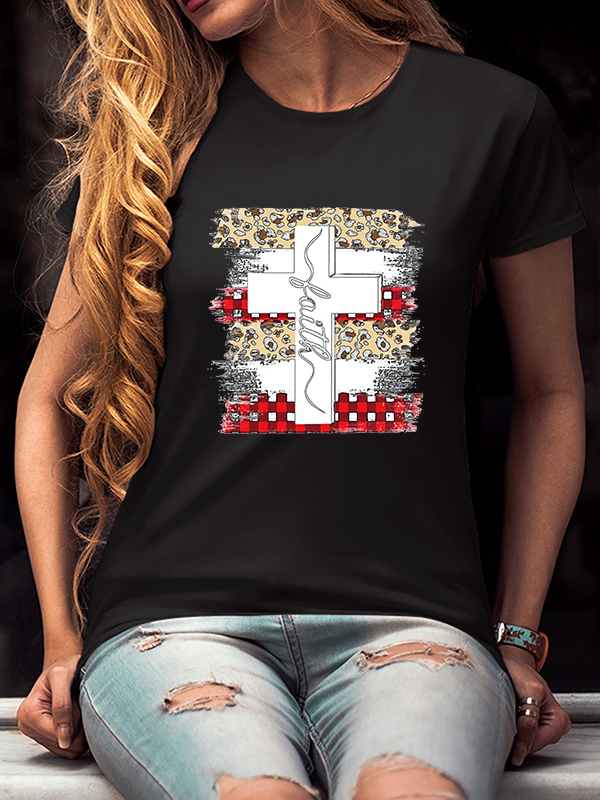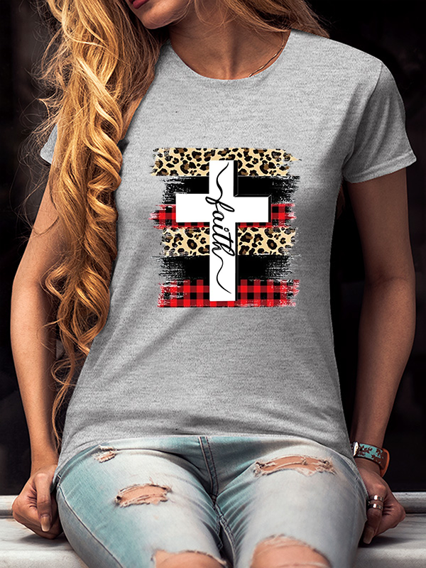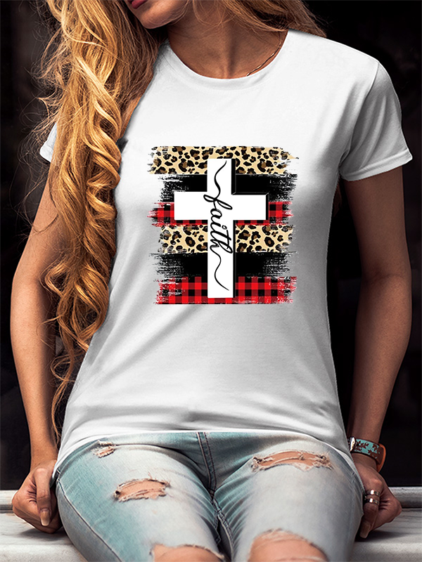 Faith Cross Plaid Leopard Christmas T-Shirt
