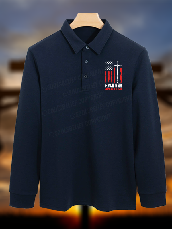 Faith Over Fear Flag Christian Cotton Long-sleeve Polo Shirt