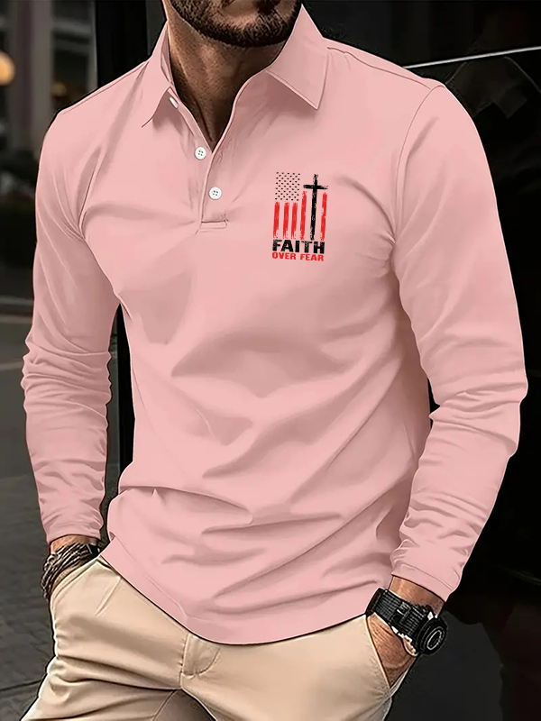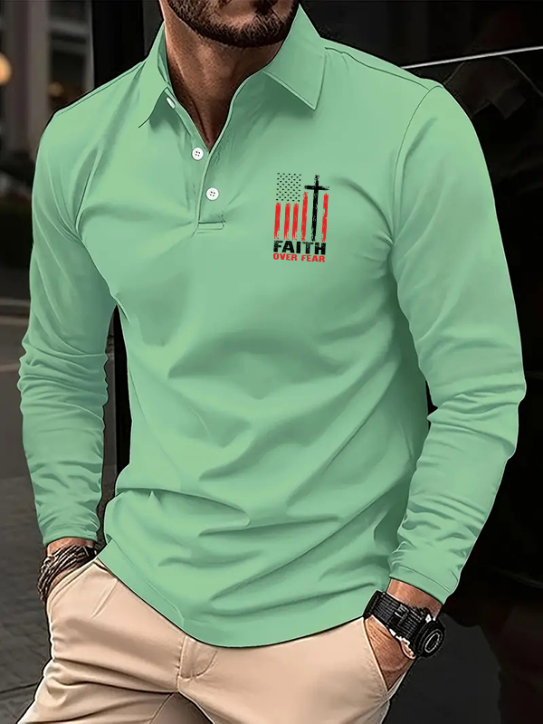Faith Over Fear Flag Long Sleeve Polo Shirt