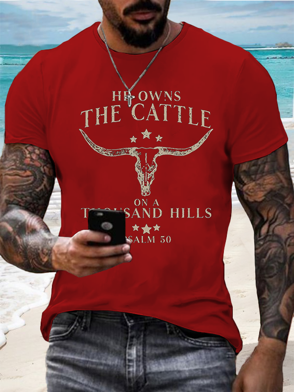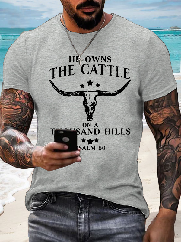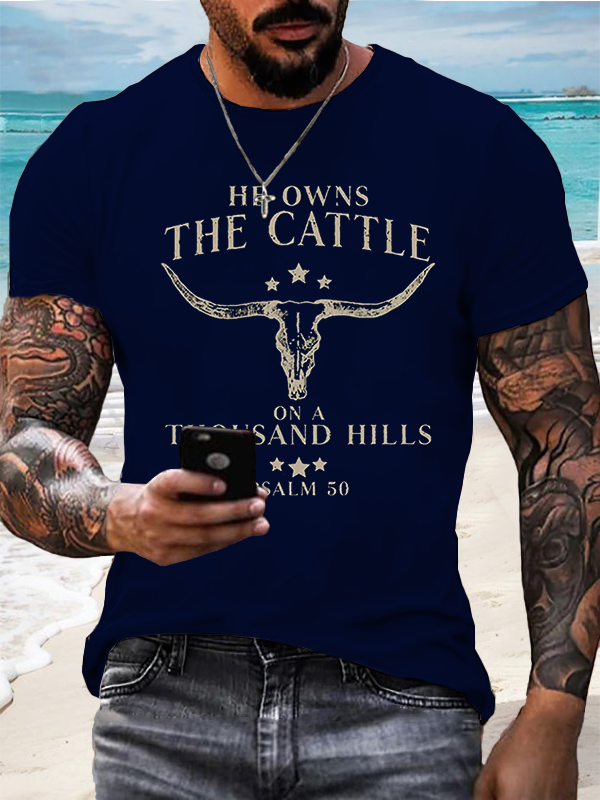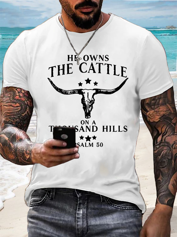 Men's He Owns The Cattle On A Thousand Hills Psalm 50:10 T-Shirt