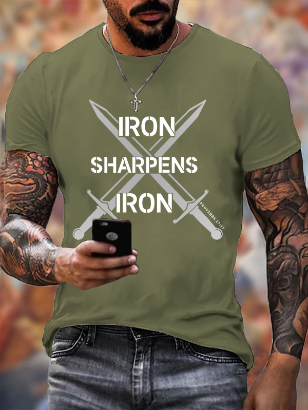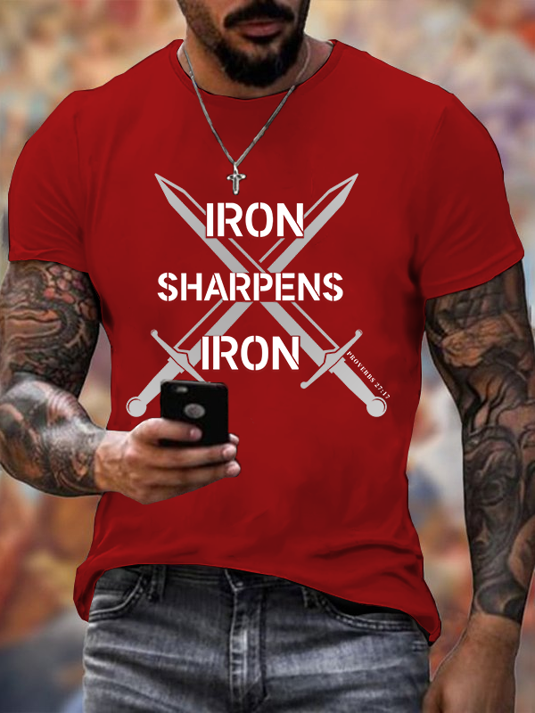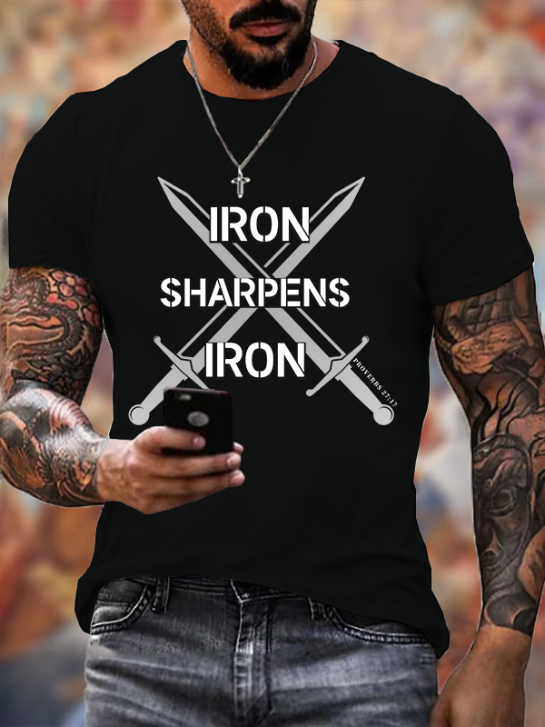Iron Sharpens Iron Proverbs 27:17 Christian Cotton T-Shirt