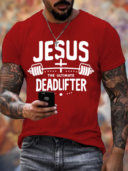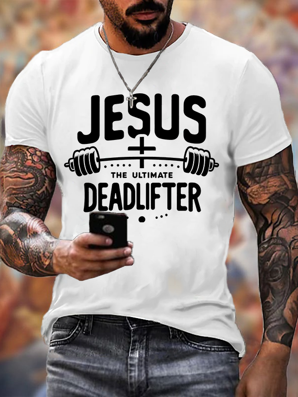 Jesus the Ultimate Deadlifter Jesus God Christian Cotton T-shirt