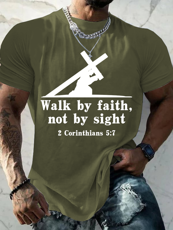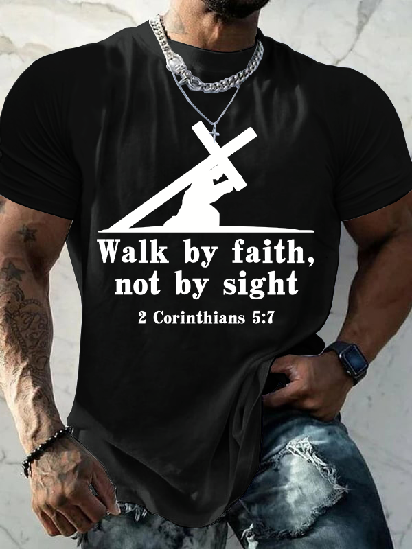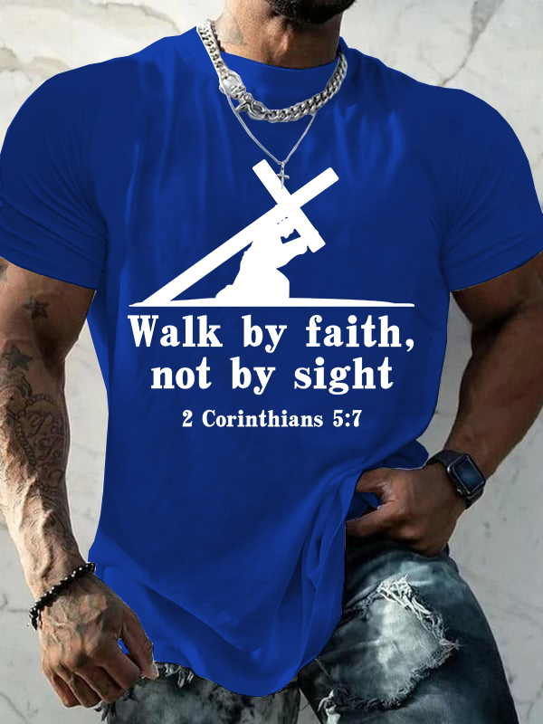 Walk By Faith, Not By Sight – 2 Corinthians 5:7 Christian Cotton T-Shirt