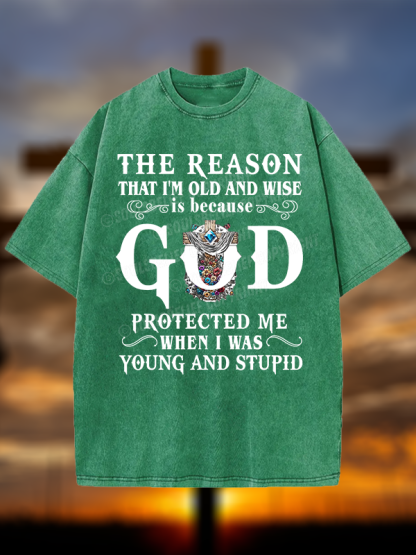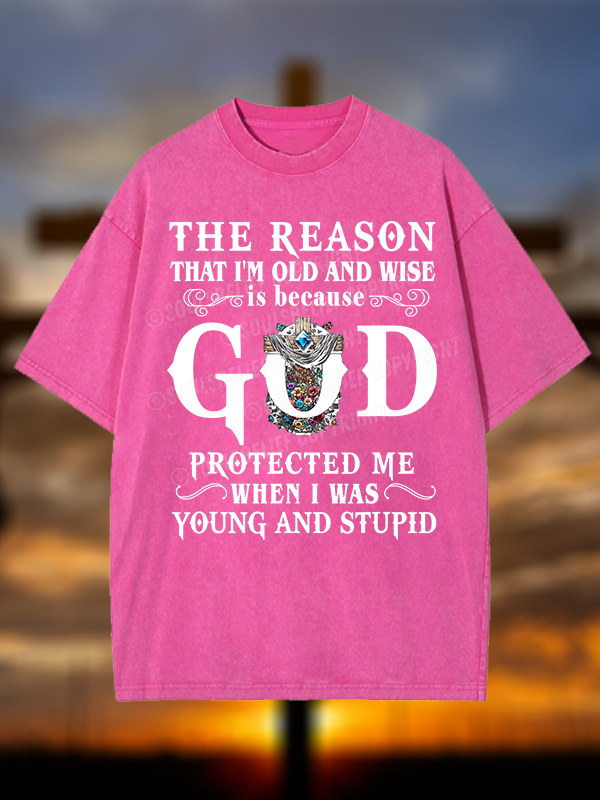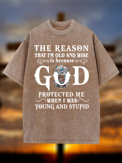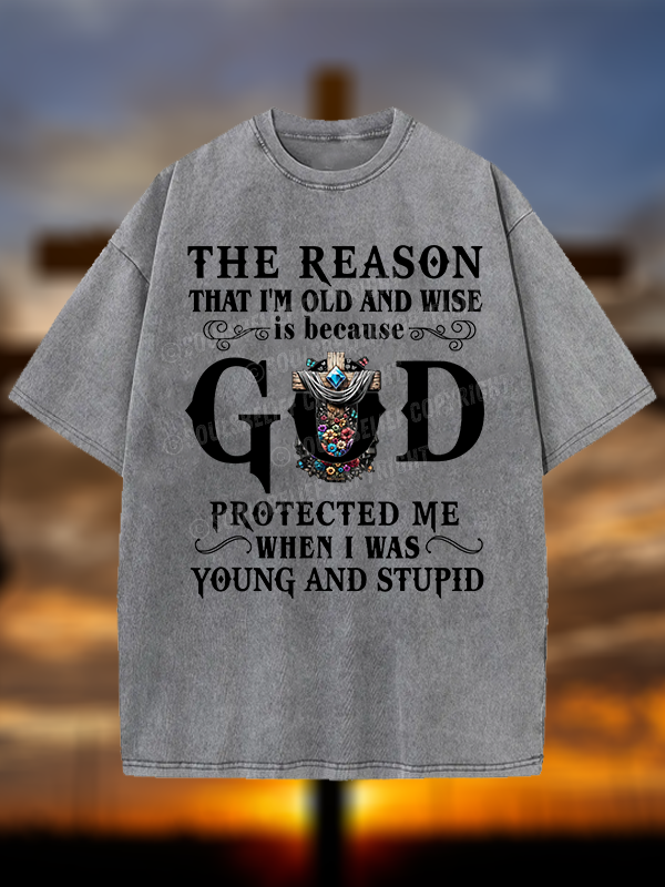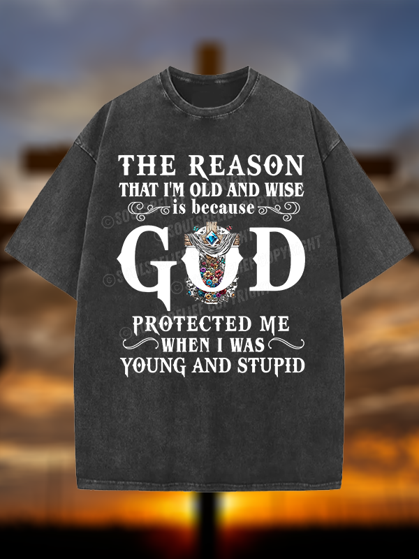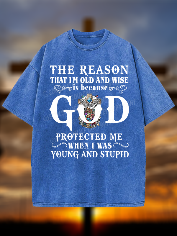 The Reason I'm Old And Wise Is Because God Protected Me When I Was Young And Stupid Christian Washed T-Shirt