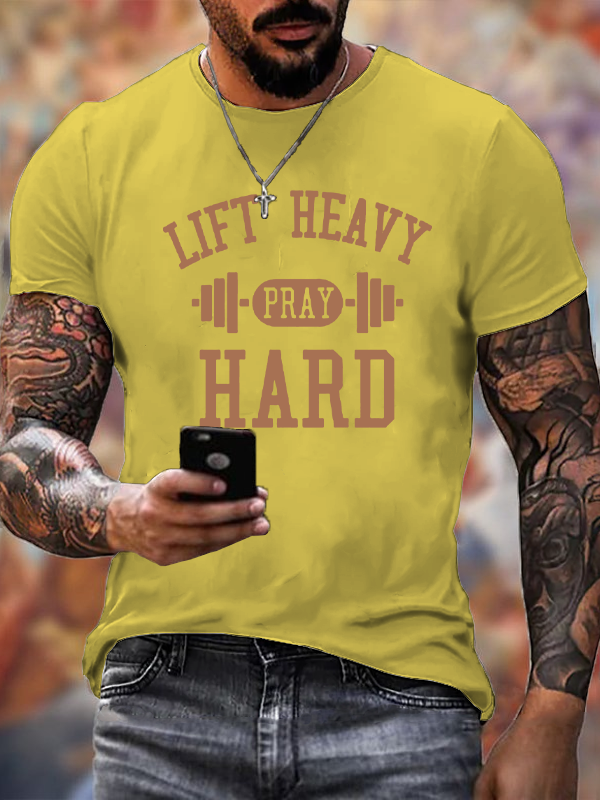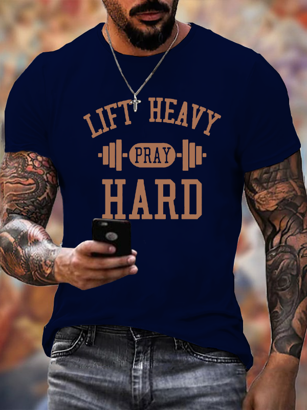 Lift Heavy Pray Hard Christian Cotton T-Shirt