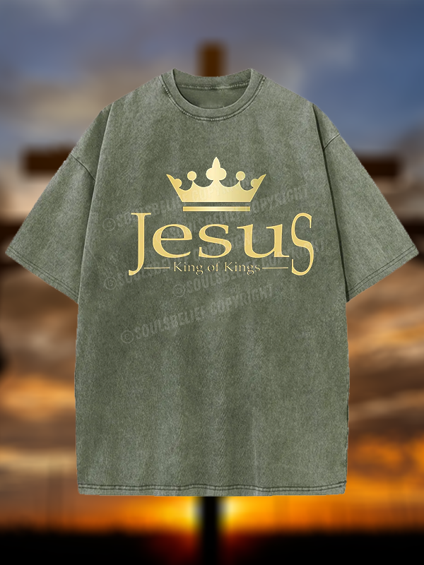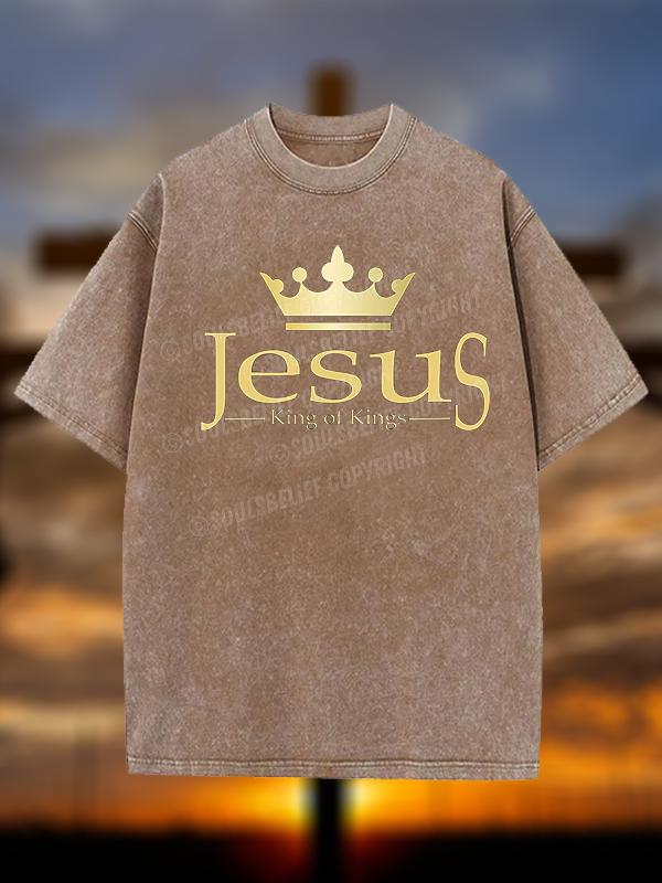 Jesus The King Of Kings Christian Washed T-Shirt