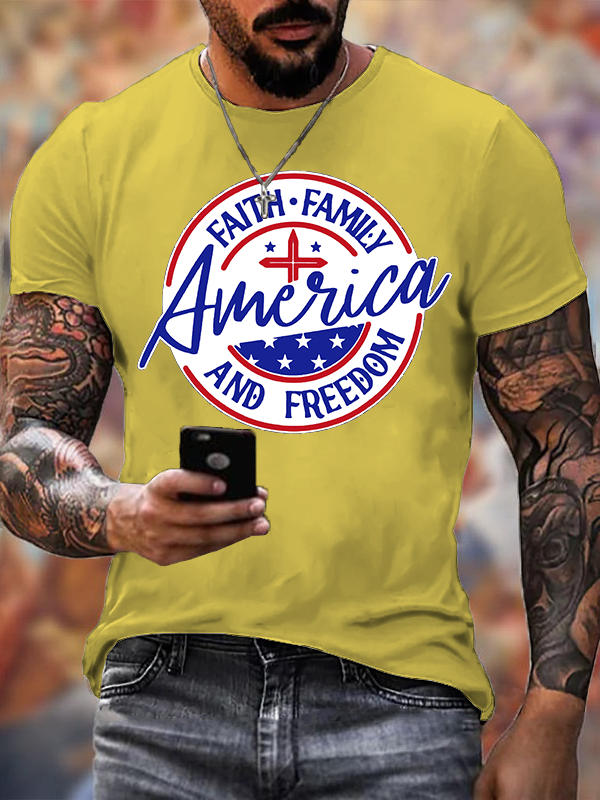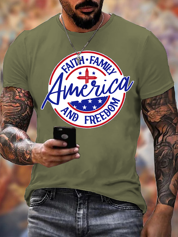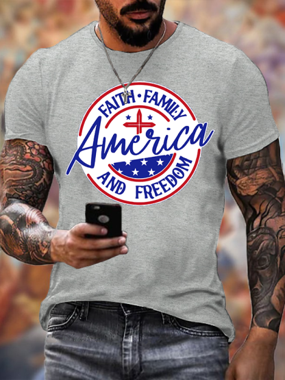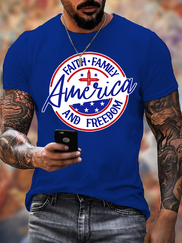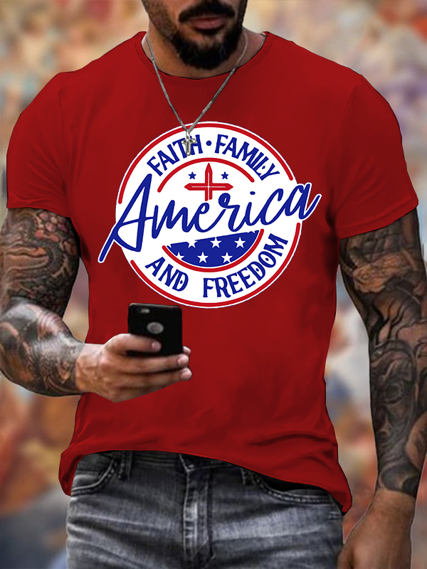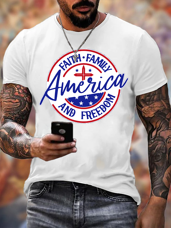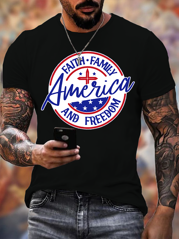 America Faith Family Freedom 4th Of July Jesus God Christian Cotton T-Shirt