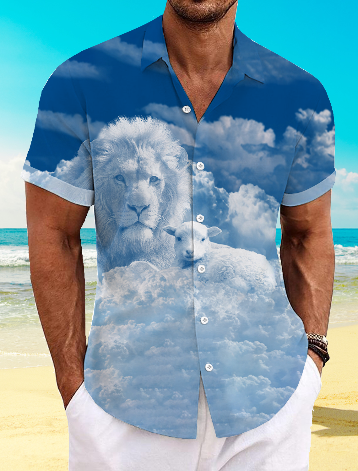 The Lion And The Lamb Christian Short Sleeve Hawaiian Shirt