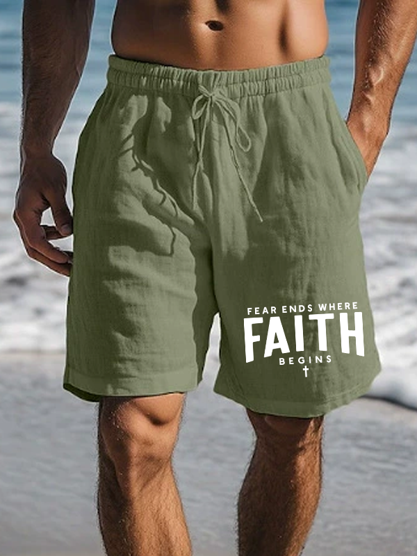 Men's Fear Ends Where Faith Begins Christian Beach Shorts