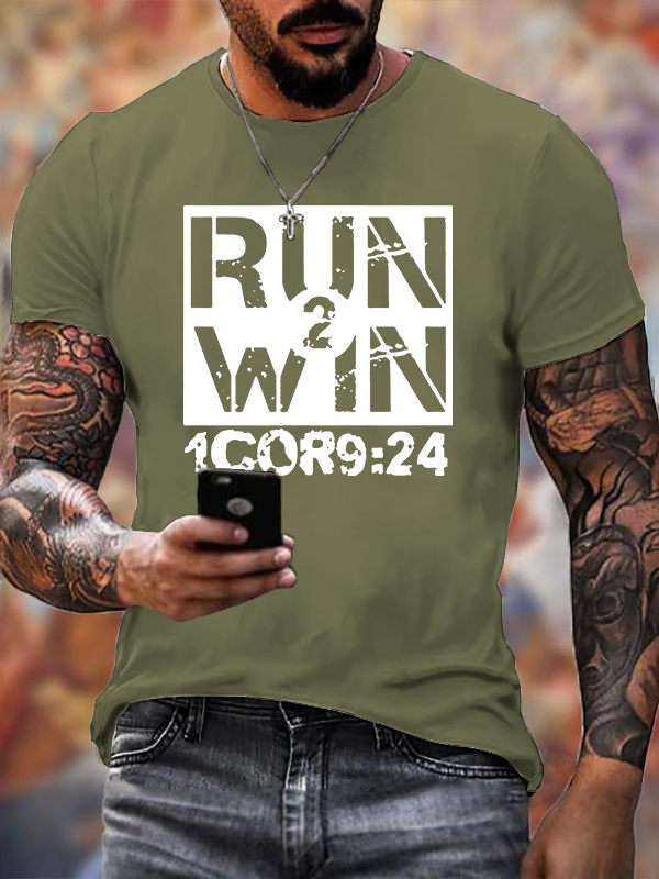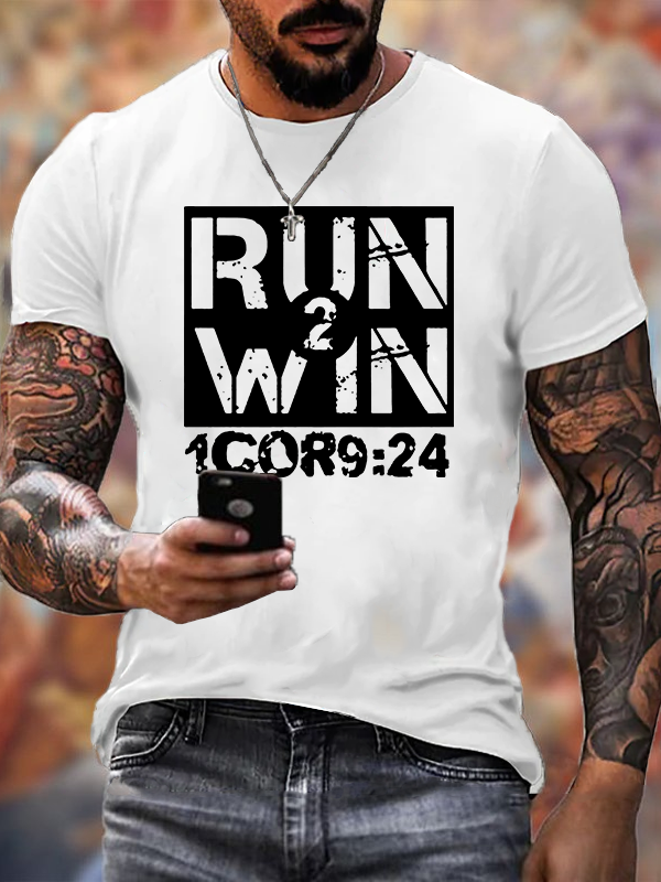1 Corinthians 9:24 "Run 2 Win" Christian Cotton T-Shirt