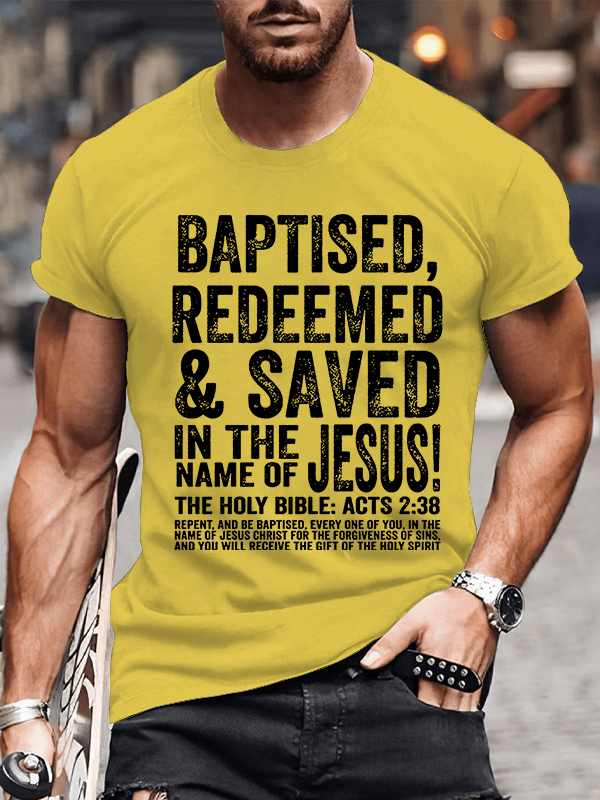 Baptised Redeemed & Saved In The Name Of Jesus Christian Cotton T-Shirt