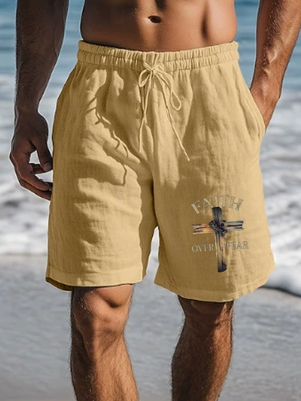 Men's Cross Faith Over Fear Christian Beach Shorts