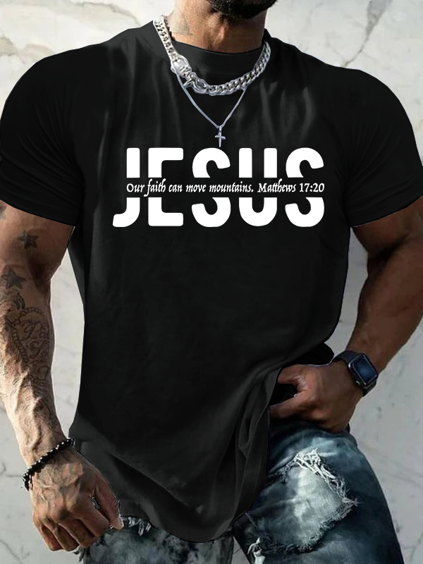 Our Faith Can Move Mountains Matthews 17:20 Jesus Cotton T-Shirt