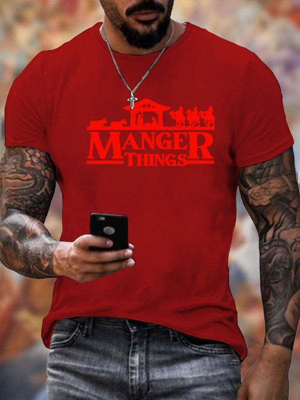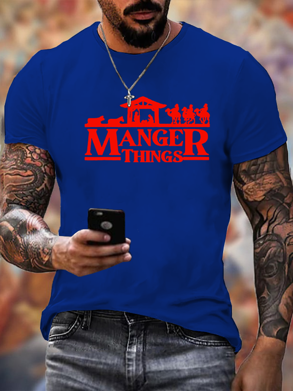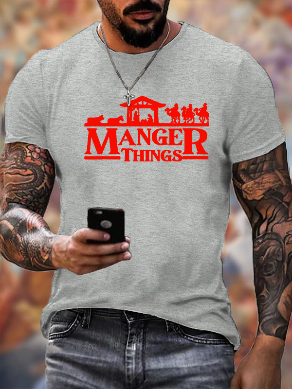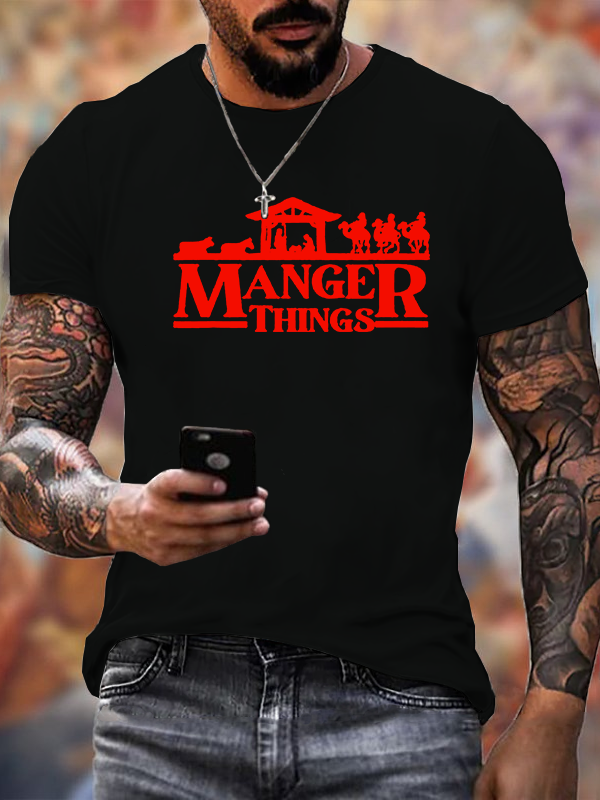 Manger Things Nativity Christmas Christian Cotton T-Shirt