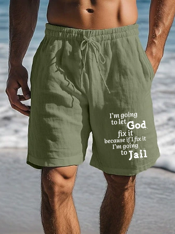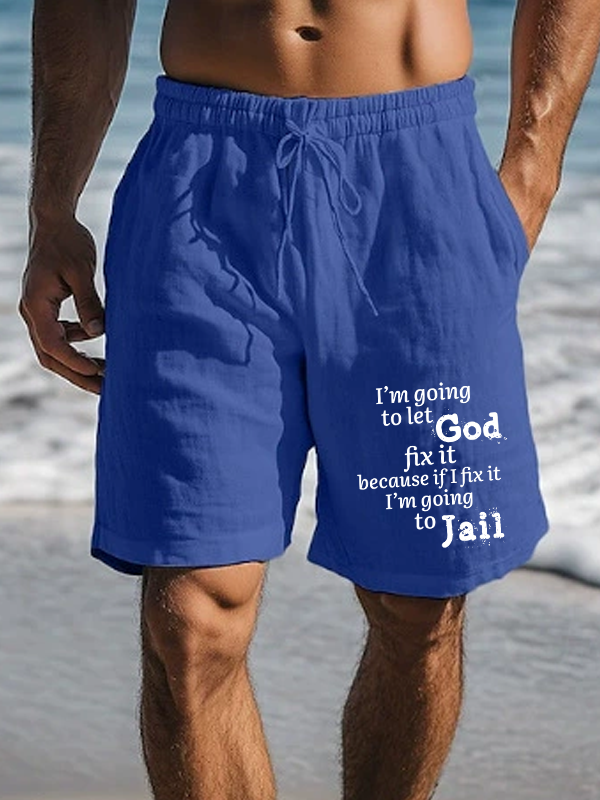 Men's I’m Going to Let God Fix It Because if I Fix It I’m Going to Jail Christian Beach Shorts