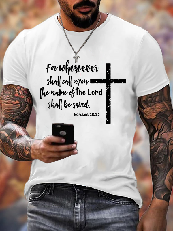For Whosoever Calls Upon The Name Romans Jesus God Christian Cotton T-Shirt