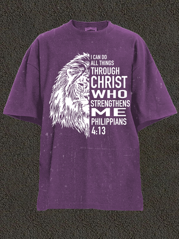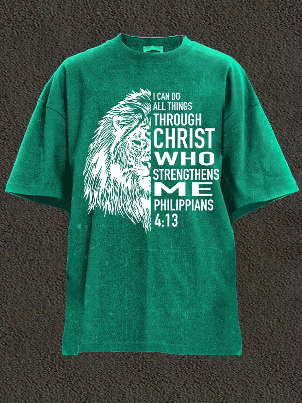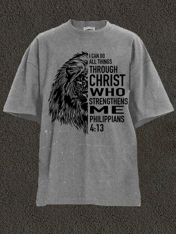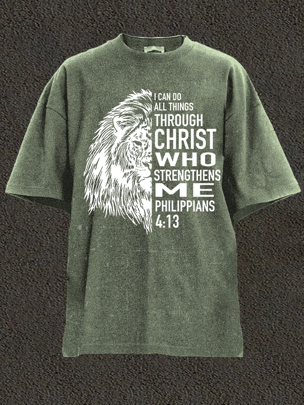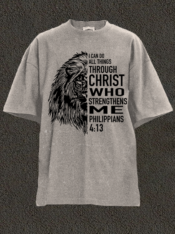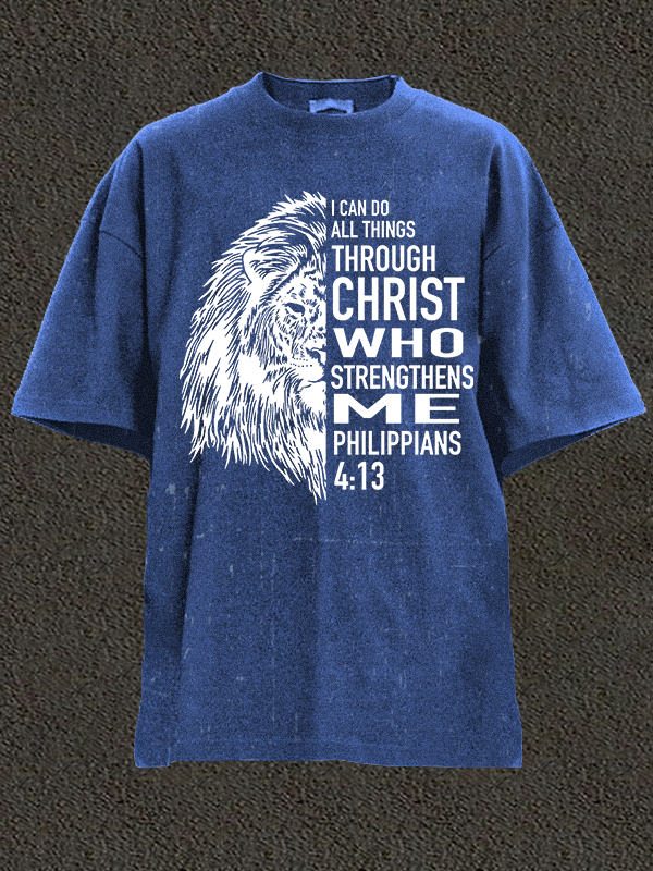 Philippians 4:13 Verse Lion I Can Do All Things Through Christ Christian Washed T-Shirt