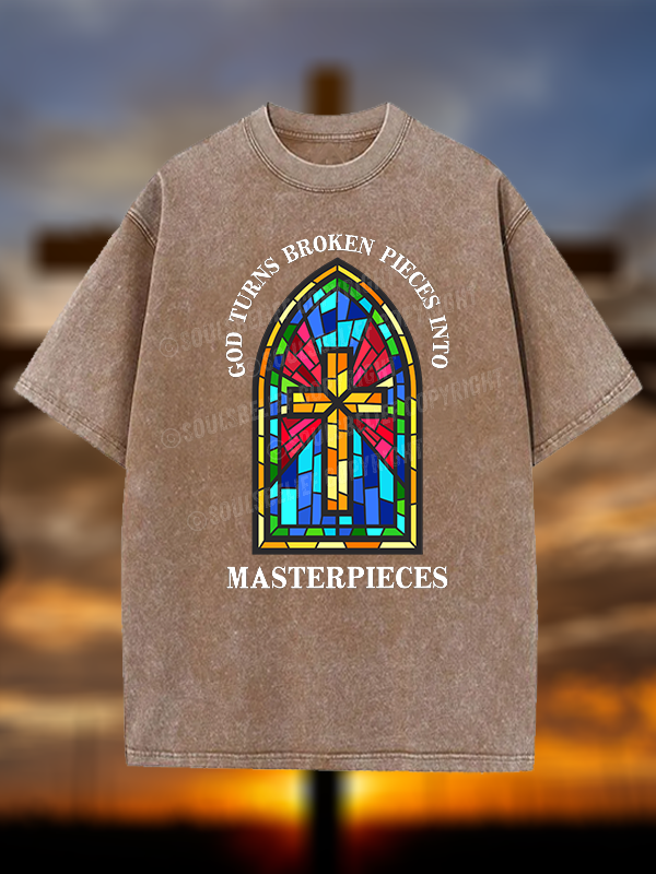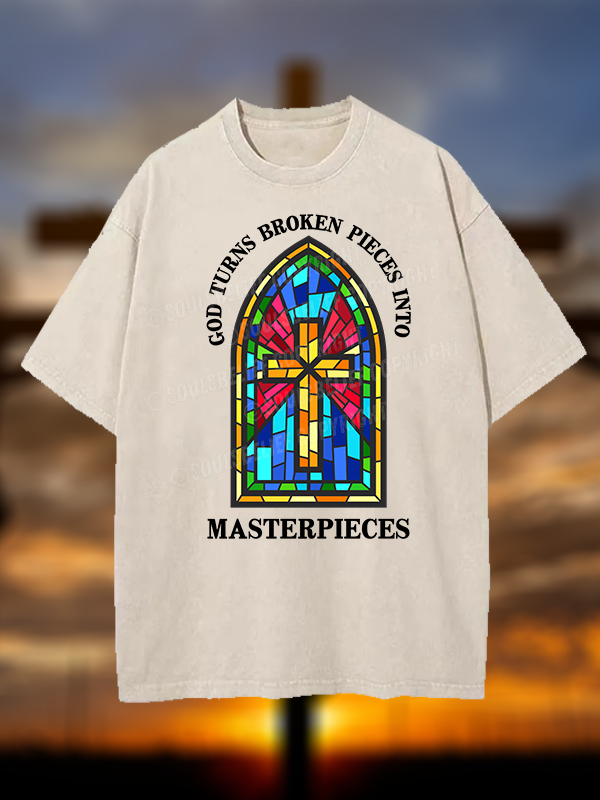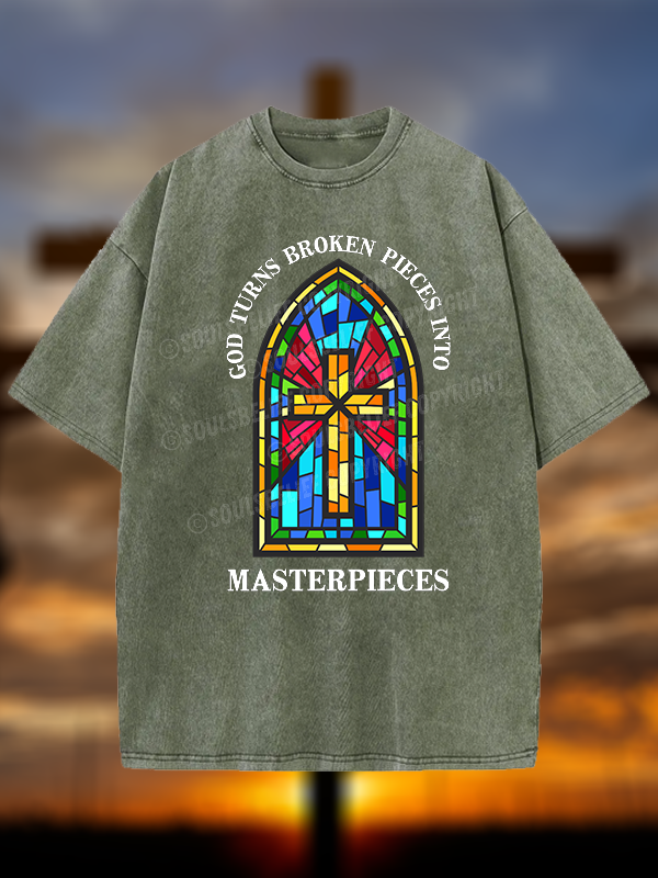God Turns Broken Pieces Into Masterpieces Christian Washed T-Shirt