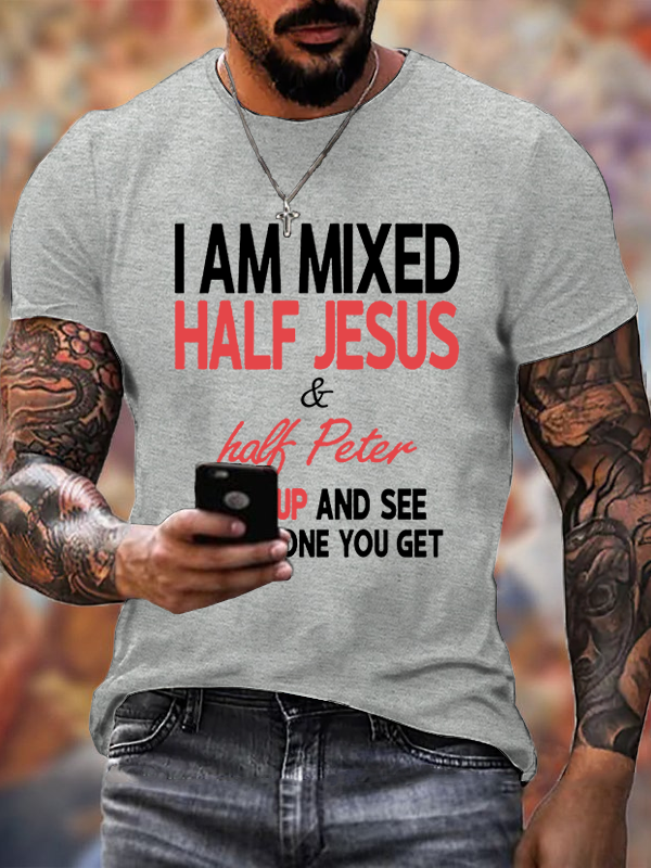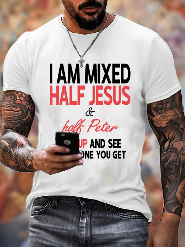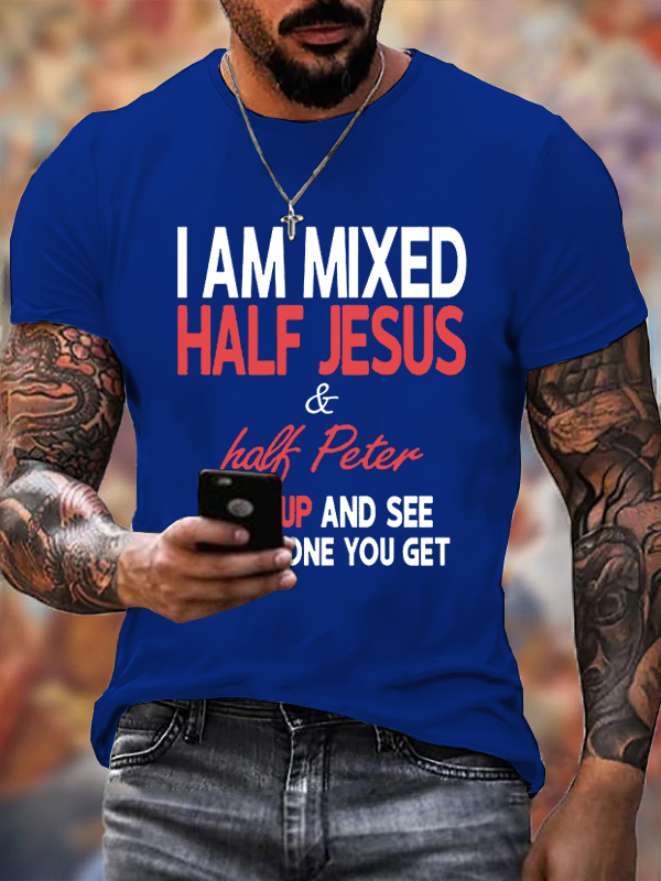 I Am Mixed Half Jesus And Half Peter Jesus God Christian Cotton T-Shirt