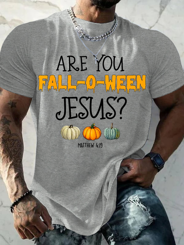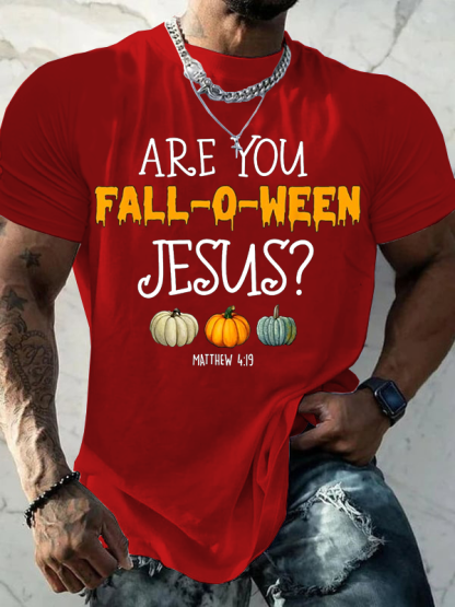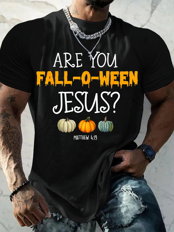 Christian Faith Halloween Are You Fall-o-ween Jesus Matthew Bible Verse Cotton T-Shirt