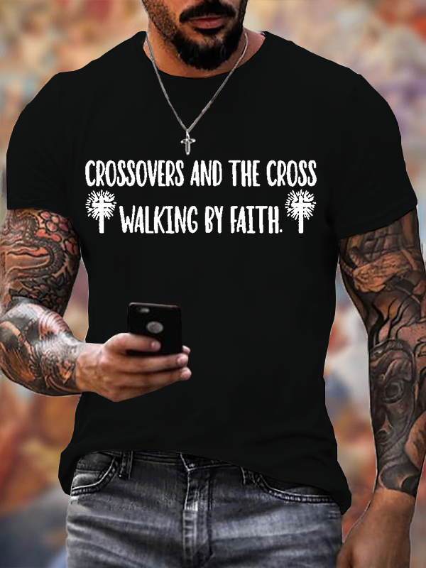 Crossovers and the Cross Walking by Faith Christian Cotton T-Shirt