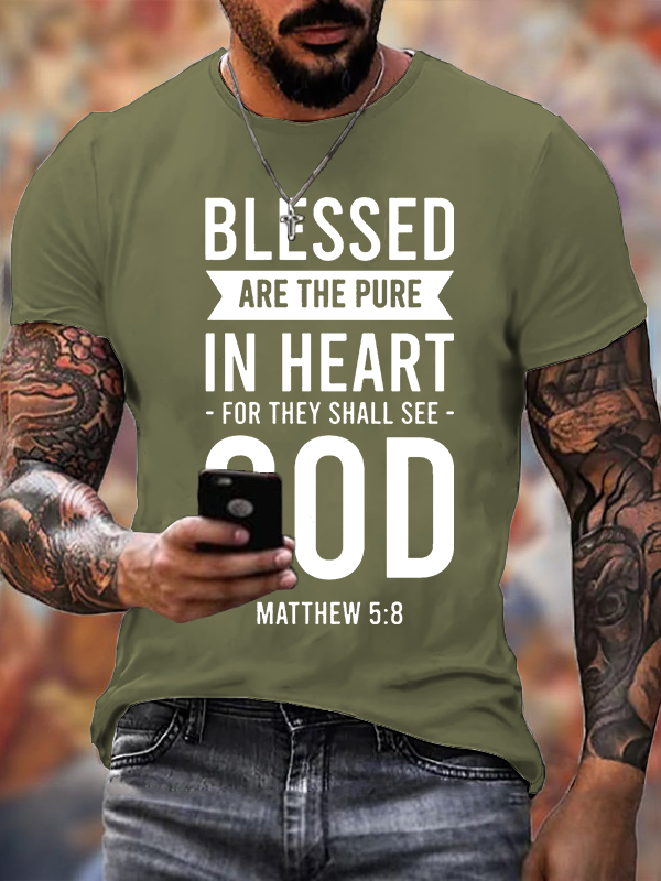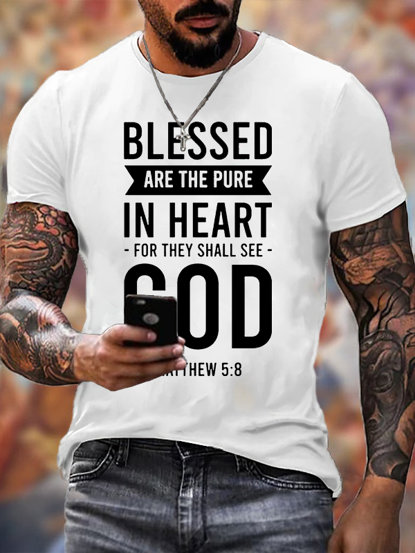 Blessed Are The Pure In Heart For They Shall See God Matthew 5:8 Christian Cotton T-Shirt
