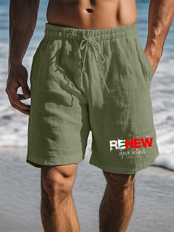 Men's Renew Your Mind Romans 12:2 Christian Beach Shorts