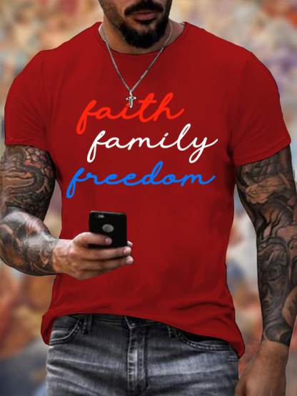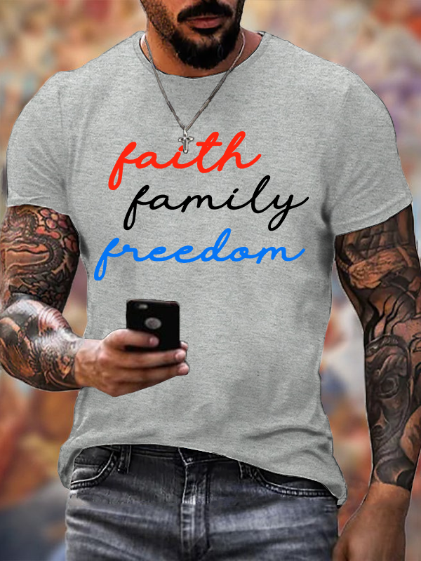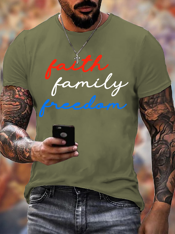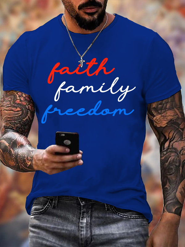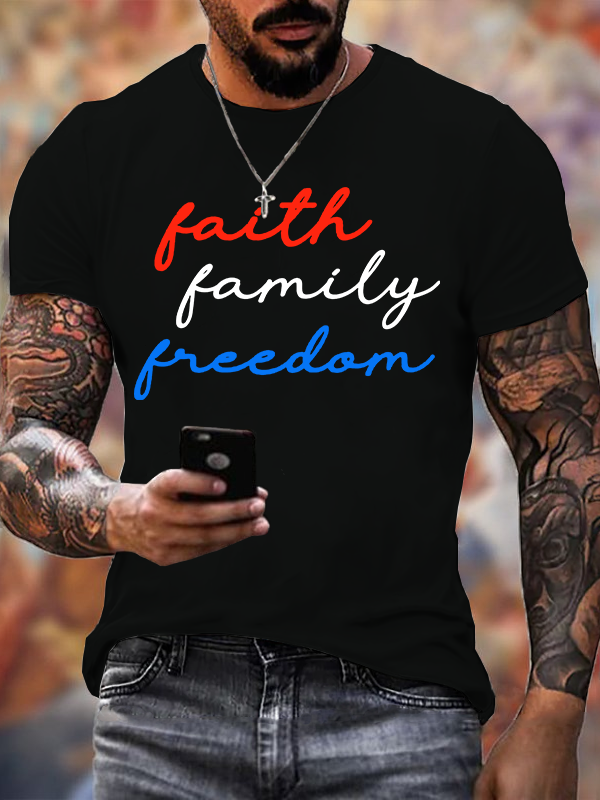 Faith Family Freedom 4th July American Jesus God Christian Cotton T-Shirt