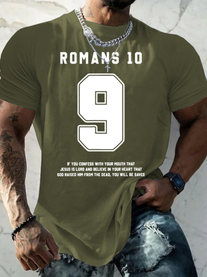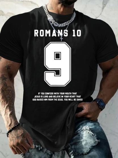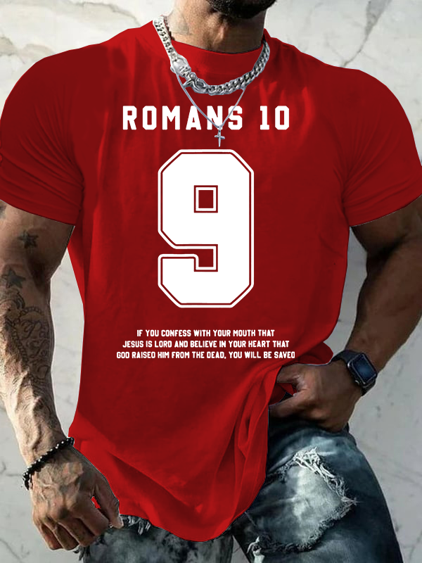 Romans 10 : 9 Jesus God Christian Cotton T-Shirt