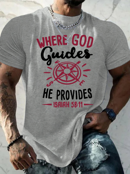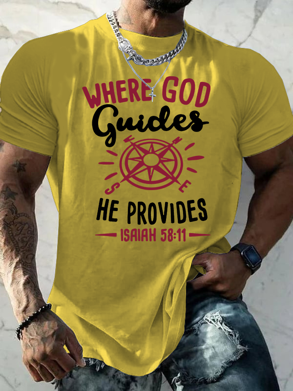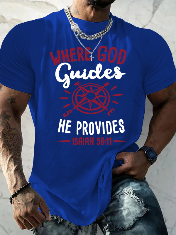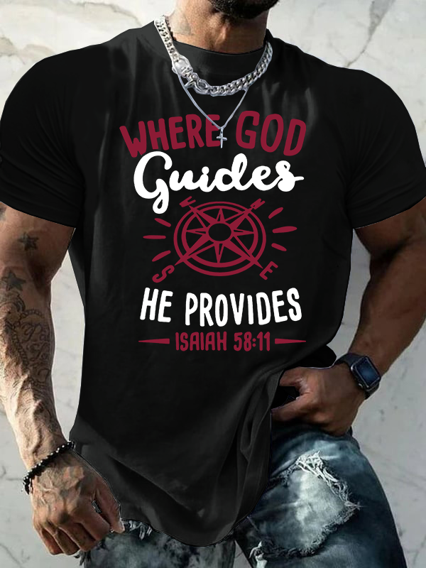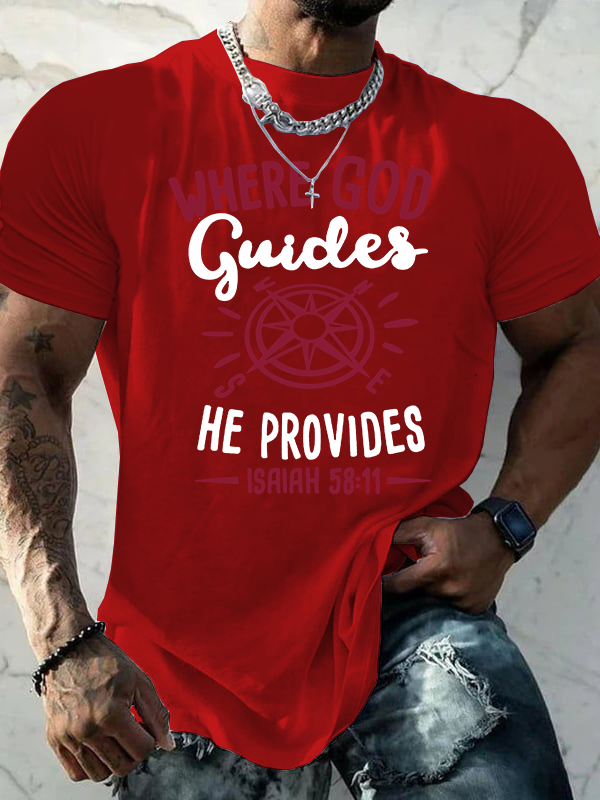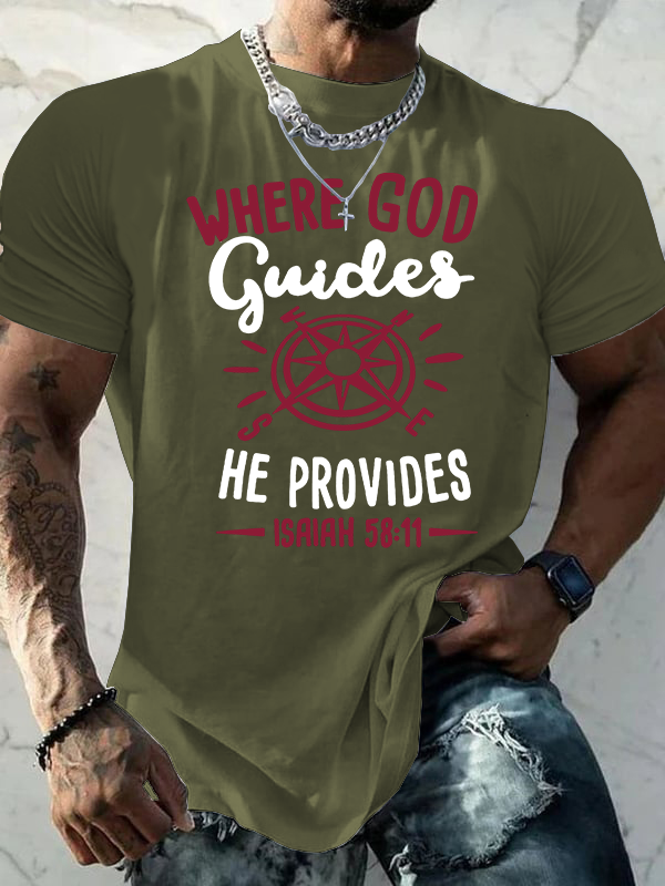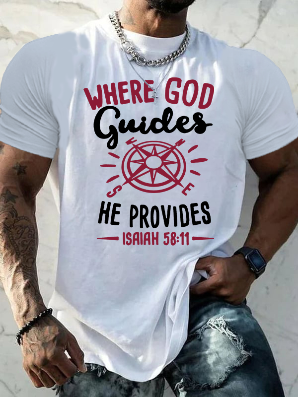 Where God Guides He Provides Isaiah 58 :11 Jesus God Christian Cotton T-Shirt