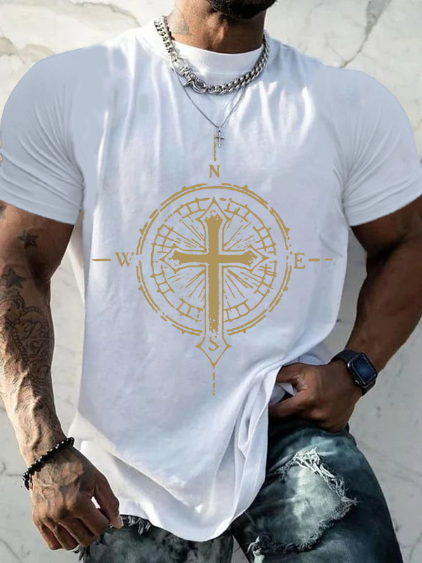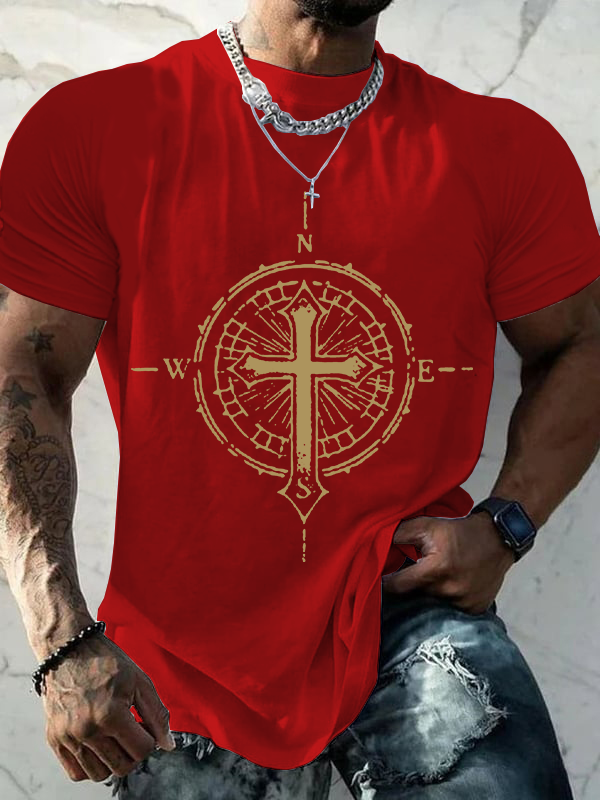 Red Cross Jesus God Christian Premium Mercerized Cotton Tee