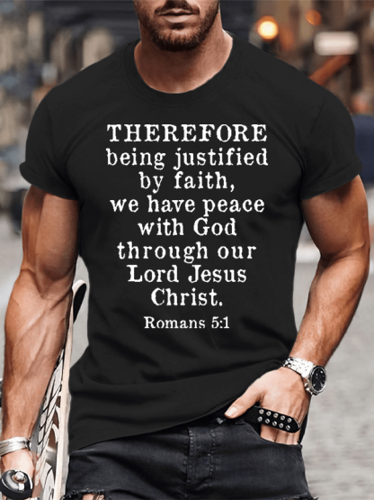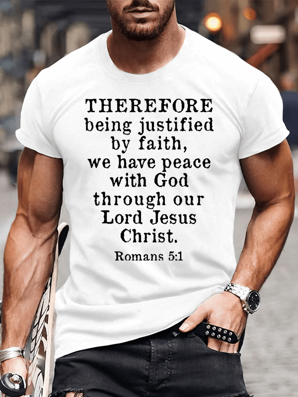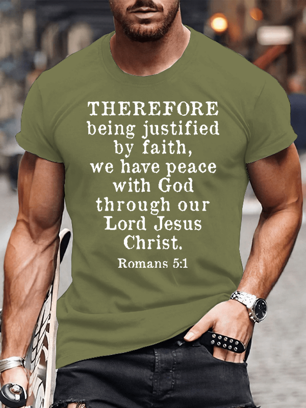 Therefore Being Justified By Faith We Have Peace Romans 5:1 Christian Cotton T-Shirt