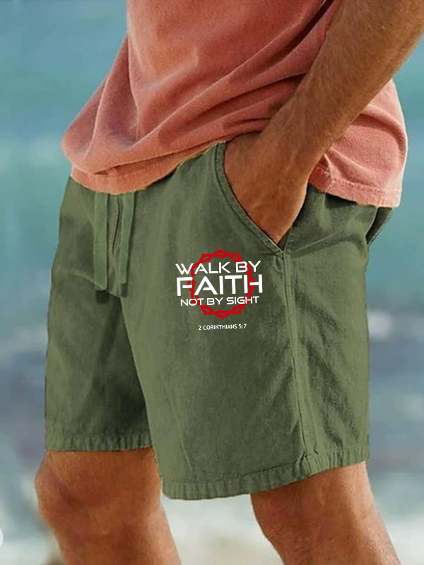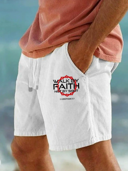 Men's Walk By Faith Not By Sight 2 Corinthians 5:7 Cross Christian Beach Shorts